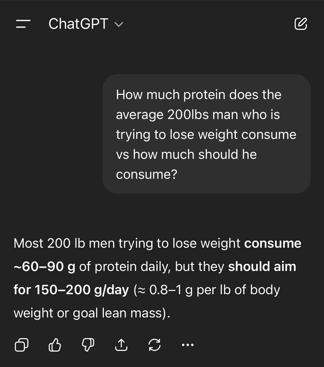 P.S. If you weigh more than 200lbs, you need MORE protein